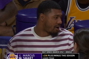 湖人VS雷霆,轉播方曬斯瑪特數據:本賽季他的總凈勝分是+238,領跑全隊。