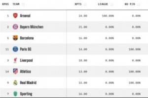 最新歐冠奪冠概率: