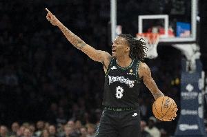 上半場,森林狼后衛海蘭德外線沒開,出場12分鐘9投3中,三分5中0拿到6分3籃板2助攻,正負值+2。