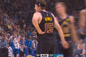 據湖人隊記Dave McMenamin報道,里夫斯在暫停結束后直接回到更衣室接受檢查。