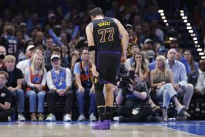 湖人官方后續宣布東契奇左腿筋受傷,本場比賽提前退賽。