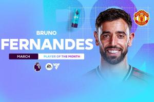 3月的英超比賽中,B費送出2球4助的數據,曼聯取得2勝1平1負的戰績。
