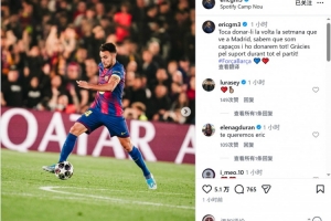 巴薩球員埃里克·加西亞社媒鼓勵球隊,他寫道:“下周我們要在馬德里完成逆轉,我們知道自己有這個能力,會拼盡全力!感謝球迷整場比賽的支持。”