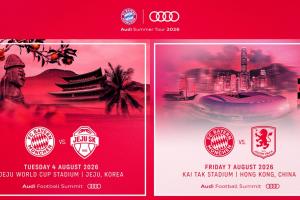 拜仁慕尼黑第十屆奧迪夏季行將于今年8月1日至8日再度登陸亞洲,球隊將先后前往韓國濟州島與中國香港。本次奧迪夏季行將舉辦兩場奧迪足球峰會:孔帕尼率領(lǐng)的球隊于8月4日在濟州對陣濟州SK,8月7日轉(zhuǎn)戰(zhàn)啟德體育場迎戰(zhàn)英超阿斯頓維拉。