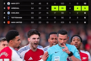 此外,盡管奧利弗執法阿森納的比賽場次僅次于利物浦,但他判給阿森納的點球數量(5個)卻是英超BIG6中最少的。