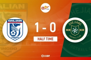 體育資訊4月10日訊 中超第5輪,大連英博主場對戰(zhàn)浙江隊,半場結(jié)束英博1-0領(lǐng)先。