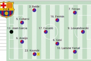 鋒線上最大的疑問是亞馬爾是否會出場,原則上費蘭·托雷斯將首發出戰此役,萊萬則可能繼續首發,拉什福德可能會休息,如果弗里克能夠說服亞馬爾輪休,魯尼·巴德吉將出任右邊鋒。