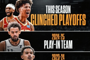 老鷹戰(zhàn)績46勝35負(fù),排名東部第五、正式鎖定季后賽(東部前六)和東南區(qū)冠軍。