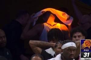 太陽球員格雷森·阿倫在進攻中受傷,據太陽隊記Amanda Pflugrad報道,阿倫在離場時捂著自己的左腿筋。