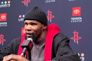 賽后杜蘭特接受采訪,談到自己達(dá)成最老單賽季2000分的成就,杜蘭特謙虛地說:“我只是可能在這個(gè)年紀(jì)打了最多的比賽。我打了多少場比賽?78場?77場?老球員們,像卡爾·馬龍那樣的家伙,我可得他也在榜單上吧,還有誰?”