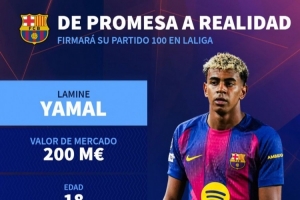 據(jù)德國轉(zhuǎn)會(huì)市場(chǎng)統(tǒng)計(jì),如果18歲的亞馬爾此役出戰(zhàn),他將達(dá)成西甲100場(chǎng)比賽里程碑。