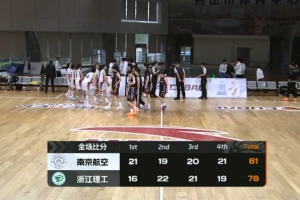 末節(jié)決勝雙方依舊拉鋸互不相讓,節(jié)中幾次戰(zhàn)平,南京航空在落后4分的情況下依靠一波7-0的攻勢反超比分,浙江理工接近3分鐘的得分荒幾乎葬送比賽,蘇靖妍命中止血三分,但最后一攻的絕平三分沒能打成。最終,南京航空航天大學81-78力克浙江理工大學拿下比賽。