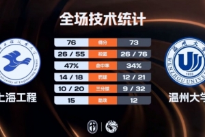 末節比賽,上海工程在前三分鐘沒有得分,溫州大學先拿6分穩住局勢,但之后的比賽他們突然斷電,上海工程打了一波11-0的攻勢直接完成反超,孫發航兩罰全中,盛家銘絕平三分不中,最終上海工程76-73險勝溫州大學。