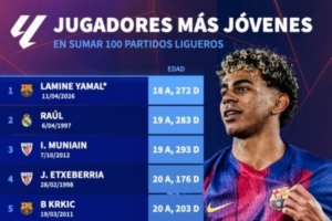 達成西甲100場最年輕球員排名: