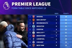 德轉統(tǒng)計了同期(自第19輪以來)英超各隊的積分情況,熱刺是唯一沒有取勝過的球隊,而且球隊同期積分排在英超20支球隊的最后一位。
