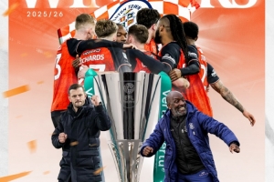 體育資訊4月13日訊 英錦賽決賽,盧頓以3-1的比分戰勝斯托克港奪冠,34歲少帥威爾希爾拿到執教生涯首個冠軍。