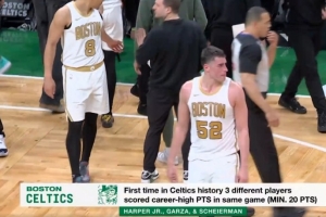 據(jù)統(tǒng)計,這是綠軍隊史首次同場有3位球員各自砍下生涯得分新高。