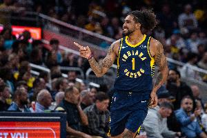 本場(chǎng)比賽,步行者全員外線手感不錯(cuò),各種三分多點(diǎn)開花一度追上比分,雖然最終未能逆轉(zhuǎn)成功,但命中率還是在線,全隊(duì)三分54投23中,命中率達(dá)到42.6%。