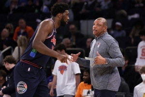 談到昔日弟子恩比德因為闌尾炎接受手術一事,里弗斯表示:“搞什么鬼?闌尾炎?這種事簡直是編都編不出來的。真的,你根本編不出來。當我還在執教這里時,我們為確保他的健康已竭盡全力。而且我知道現主帥納斯也采取了同樣的措施,因為我們之間經常交流?!?/p>