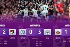 阿森納1-2不敵伯恩茅斯,多賽一場的情況下榜首優勢縮小只剩6分。切爾西0-3不敵曼城,英超三連敗的他們距離英超第五已有4分差距。熱刺0-1不敵桑德蘭,2026年低迷至今的北倫敦勁旅正式掉進降級區。