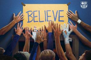 賽前,巴薩官方社媒,曬出全員用手觸碰“相信”標(biāo)語的海報(bào),借用了美劇《足球教練》中的梗。