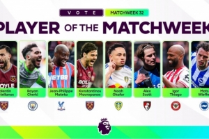 體育資訊4月14日訊 英超第32輪戰罷,英超官方也評選出本輪比賽最佳球員候選名單,具體如下:
