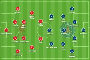 官方陣型4222,伊薩克和埃基蒂克雙前鋒,維爾茨左邊前衛,索博右邊前衛,麥卡利斯特、赫拉芬貝赫雙中場。