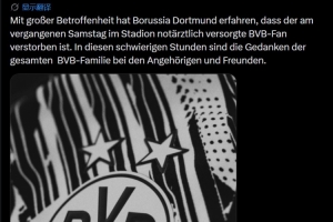 多特寫道:“多特蒙德足球俱樂部懷著沉痛的心情獲悉,上周六在球場內接受緊急醫療救治的那位BVB球迷已不幸去世。在這艱難的時刻,整個BVB大家庭的心與逝者的親屬及朋友同在。”