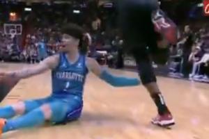 GIF-三球此前在比賽中扒拉阿德巴約的腿