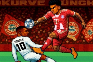 拜仁官方社交媒體發布了一張極具像素復古風格的賽前海報,海報中拜仁邊鋒迪亞斯與皇馬前鋒姆巴佩在空中激烈對抗。