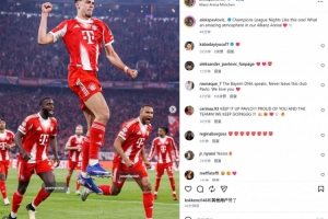他也在賽后通過社媒曬出自己的慶祝照,并配文:“像這般的歐冠之夜,我們安聯球場的氛圍太令人難以置信了!”