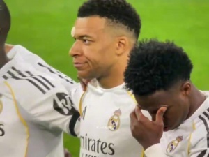 體育資訊04月16日訊 歐冠1/4決賽拜仁vs皇馬賽前,兩隊為致敬離世的皇馬舊將、1982年世界杯西班牙國家隊主帥何塞?埃米利奧?桑塔馬里亞舉行默哀儀式?,F(xiàn)場有部分德國球迷響起陣陣喧嘩,姆巴佩搖頭表示不滿。