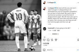 體育資訊04月17日訊 皇馬在歐冠1/4決賽被拜仁淘汰,姆巴佩賽后發(fā)表社媒表示遺憾并鼓舞球迷。