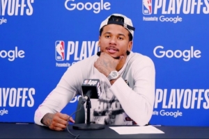 記者:說到你們的防守,我知道籃板和失誤是這場比賽的重要因素,但在半場陣地防守中,你覺得你們防得還可以嗎?