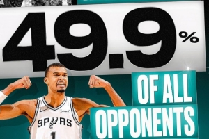 維克托·文班亞馬短暫的職業生涯至今,他已經和547名對手同場競技過,而其中有273 人(占比49.9%)都有被他至少封蓋過一次。