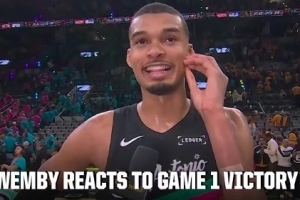 體育資訊4月20日訊 NBA季后賽首輪,馬刺主場(chǎng)111比98擊敗開(kāi)拓者,大比分1比0領(lǐng)先。賽后文班亞馬在場(chǎng)邊及發(fā)布會(huì)接受了采訪(fǎng),以下為采訪(fǎng)全文。
