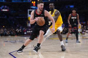 由于湖人防守球員的高壓逼搶,湯普森始終無法充分發揮他的速度優勢,而申京也從未找到機會讓隊友參與到進攻中來。在獲得單打機會后,申京也在籃下錯失了許多指無人防守的輕松上籃機會。