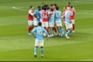 體育資訊04月20日訊 英超第33輪,曼城主場2-1戰勝阿森納。比賽第83分鐘,加布里埃爾與哈蘭德發生沖突,隨后兩隊球員都圍了上來,場面一度十分混亂。