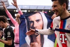 體育資訊4月5日訊 拜仁在本輪德甲3-2客場逆轉弗賴堡,眾將在賽后慶祝勝利環節也放飛自我。