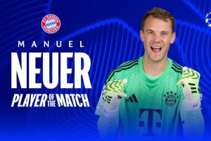 體育資訊04月08日訊 官方消息,諾伊爾當選歐足聯評選的皇馬vs拜仁全場最佳。本場,諾伊爾完成9次撲救。