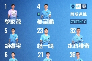2-田逸梵 8-周定洋 12-張曉彬 13-彭鵬(GK) 14-李龍 15-于睿 17-李寧 20-玄智健 34-夏合扎提·吾加合買提 46-申桓銘 54-姚俊毅 56-王昱衡