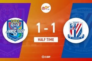 半場戰(zhàn)罷,津門虎暫1-1申花。