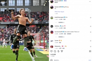 卡爾也在賽后通過社媒曬出自己進球后的脫衣慶祝照,并配文:“重大的勝利????42”。