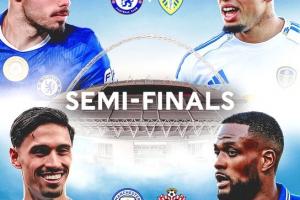 足總杯半決賽將于英國當(dāng)?shù)貢r間4月25日和26日在中立場溫布利球場舉行,采用單回合制,90分鐘內(nèi)打平則進(jìn)行30分鐘加時賽(上下半場各15分鐘),若仍未分勝負(fù)則通過點球大戰(zhàn)決出勝負(fù)。