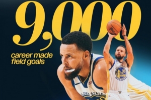 加上這4個進球,庫里生涯運動戰進球數達到9000,歷史第26人。