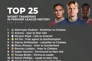 體育資訊4月7日訊 ESPN評(píng)選出了英超歷史最糟糕的25筆轉(zhuǎn)會(huì),穆德里克加盟切爾西居首,安東尼加盟曼聯(lián)次之。