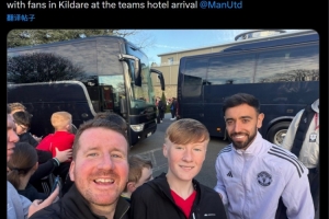 B費(fèi)在曼聯(lián)下榻的酒店外花了一個(gè)小時(shí)為球迷簽名和合影,一位球迷在社交媒體上曬出與B費(fèi)的合照,配文:“世界最佳球員在球隊(duì)下榻的酒店花了一個(gè)小時(shí)為球迷簽名合影。”