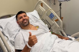 阿圭羅在業(yè)余比賽中肌腱斷裂,因此接受手術(shù),他在社交媒體上曬出躺在病床上豎起大拇指的照片,配文:“搞定了,一切都很順利。”