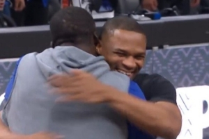 GIF-追夢遭威少和德羅贊“圍毆”